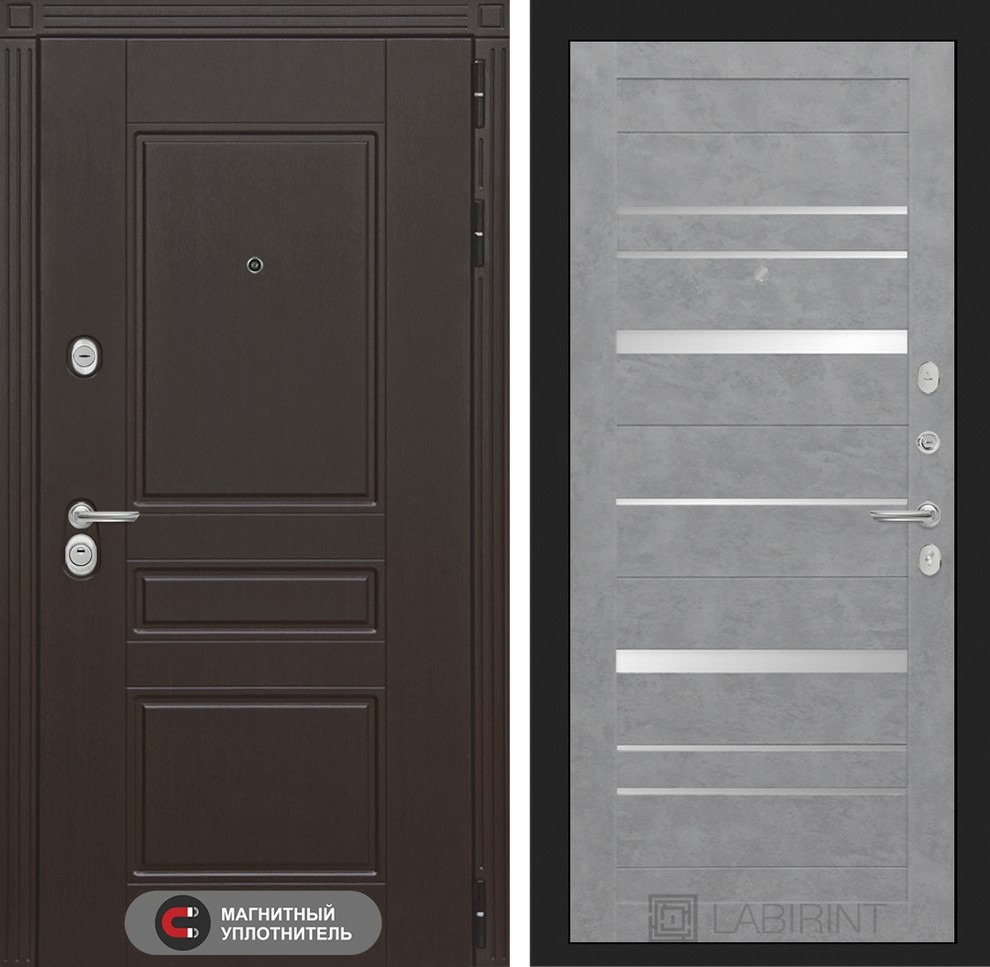 Входная дверь Мегаполис 20 Бетон светлый, зеркальные вставки